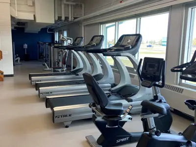 This facility is designed to be an addition to your workout in the pool. Fees are included when you purchase any type of admission to the Aquatic Centre. It is equipped with light weights and cardio machines and has some floor space for stretching.