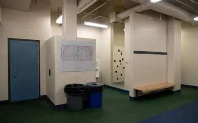 The flex dressing rooms are used in addition to the other change rooms with 3 at the User Arena and 3 at the Spectator Events Arena. They are a little bit smaller than the other dressing rooms and lead directly to the ice instead of to the players’ benches. They have benches and a bathroom, but no showers.