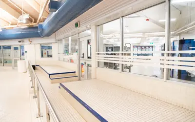 The viewing area at the aquatic centre is used during lessons to provide parents and spectators a dry spot to wait comfortably. The viewing area is located near the leisure pool with the kids play area and lazy river.