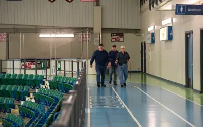 The 3-lane, rubberized walking track is used by over 7,500 people every year and is free to use. It is located in the Spectator Events Arena and open during the colder months. Members of the public, Primary Care Network clients, and athletes from the University of Alberta use this track.
