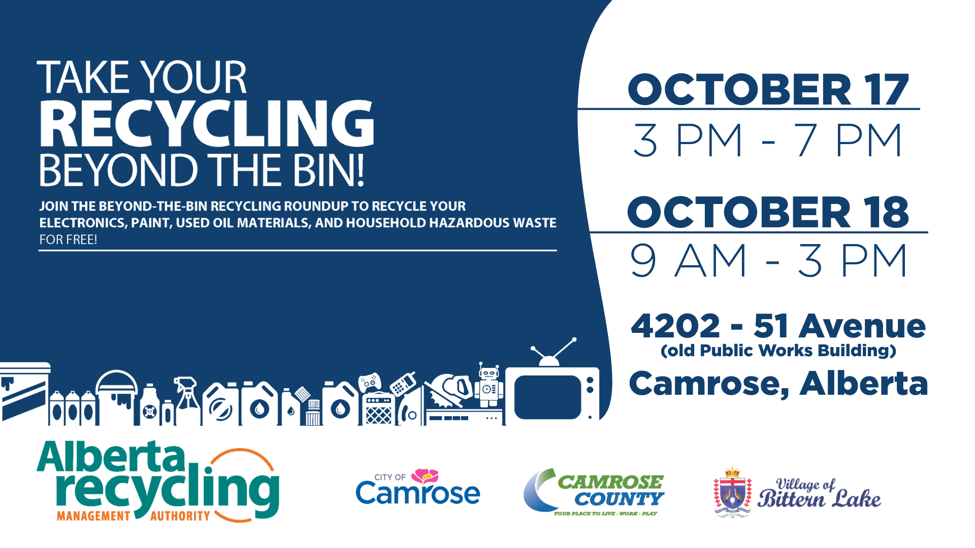 The City of Camrose is once again hosting the Beyond-The-Bin Recycling Roundup, a joint partnership with Alberta Recycling, Camrose County and the Village of Bittern Lake.