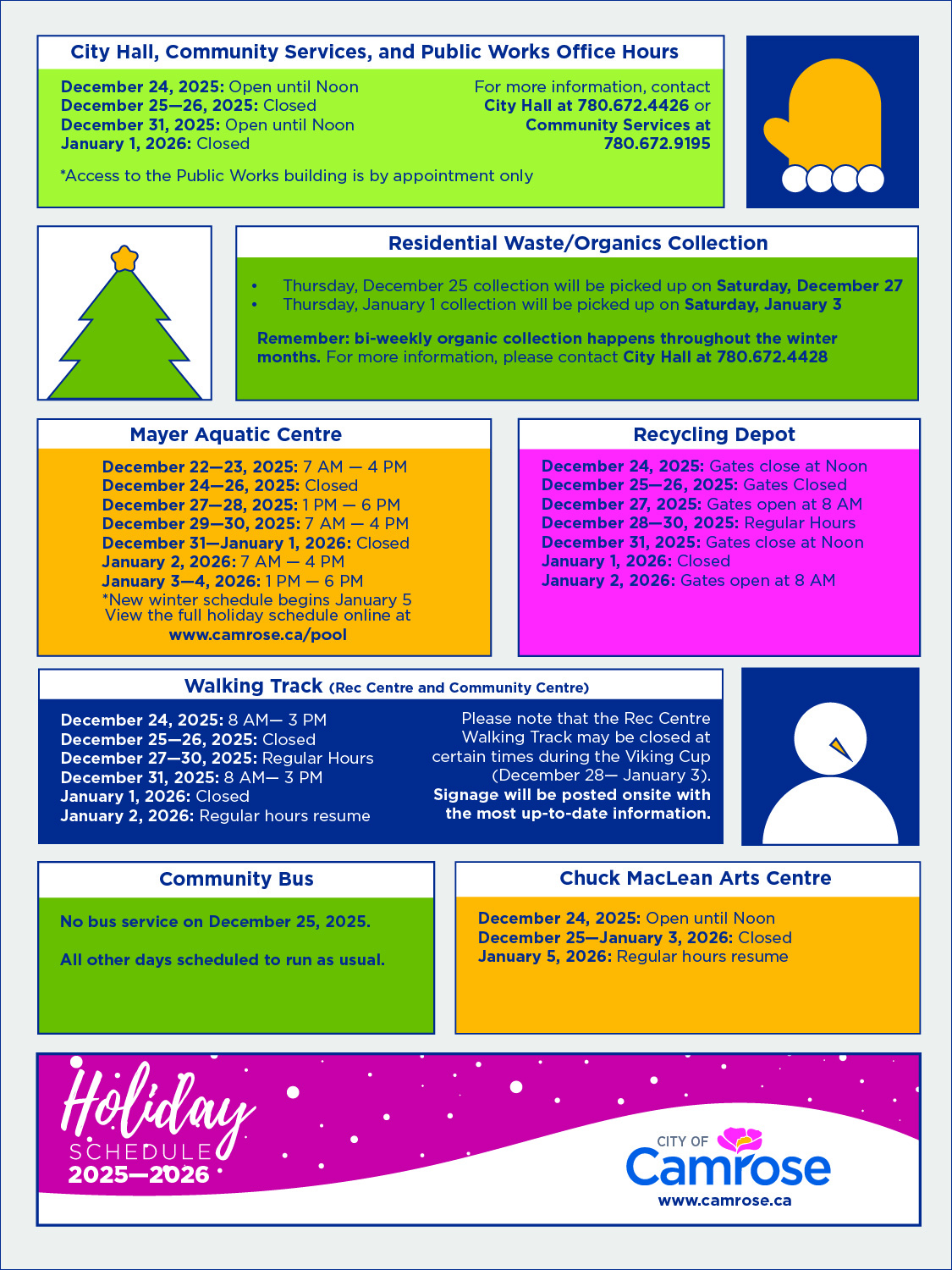 Our Holiday Facility Schedule is here! Grab your print copy in the Camrose Booster on December 16 or December 23!